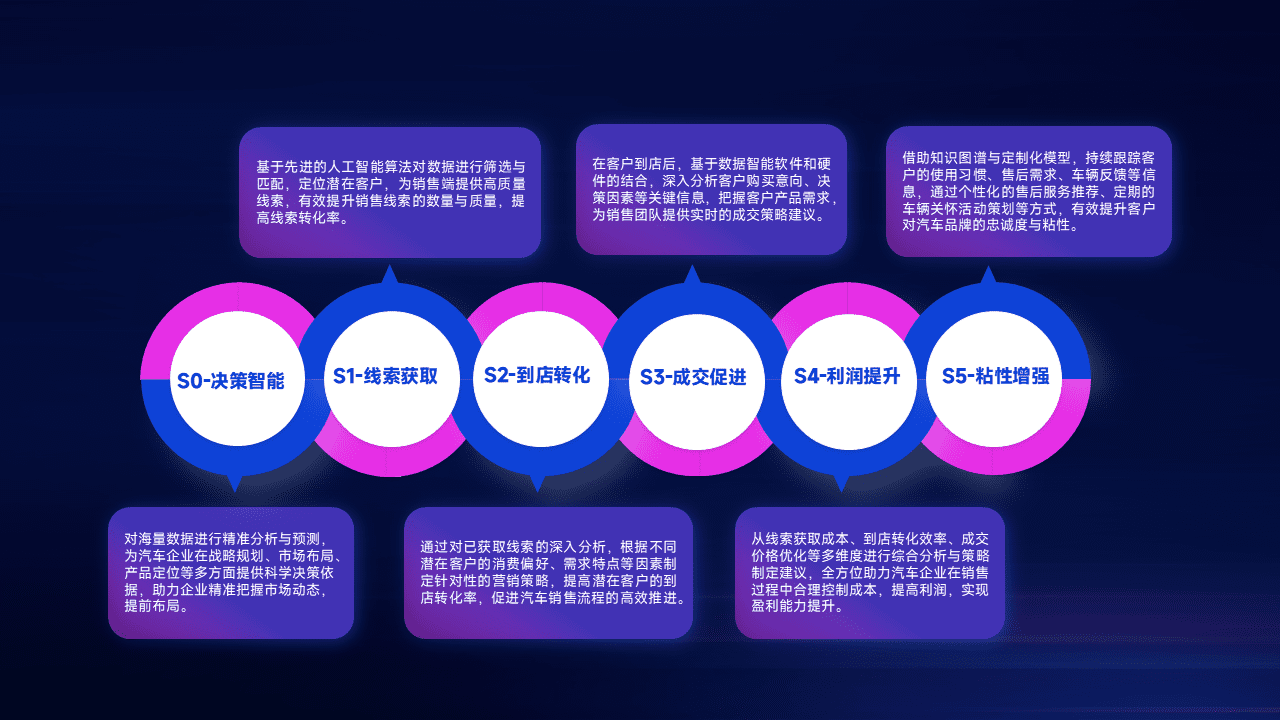 通过拓宽潜在客户来源、、、、优化线索分配并提高到店转化率,,,,以增强销售效率。。同时,,利用线索数据不断优化分析模型,,有效提升转化率,,,扩大营销影响力。。